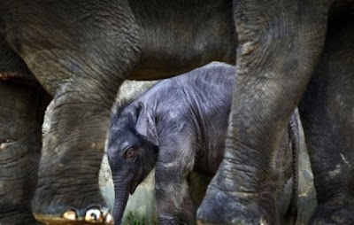 A 2-week old male baby elephant is dwarfed next to his 25-year old mother, Nandong, at the Singapore Zoo's Night Safari on Friday, Dec. 10, 2010 in Singapore. This baby is the first baby to be born in the enclosure after 9 years and had a birth weight of 151-kilograms. The Singapore Zoo and Night Safari ensures that its animals in captivity have habitats as close to that of the wild as part of its wildlife conservation efforts. Elephants are listed as endangered on International Union for Conservation of Nature.